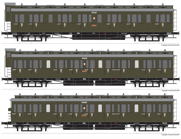 | set tří oddílových vozů 2./3. tř., st. Katowice |
