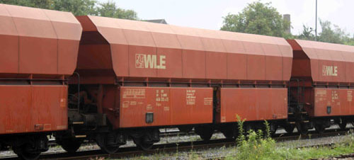 | nákladní samovýsypný vůz oranžový „WLE“ |