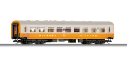 Popis   oranžový-slonová kost s šedou střechou jídelní vůz "Mitropa"