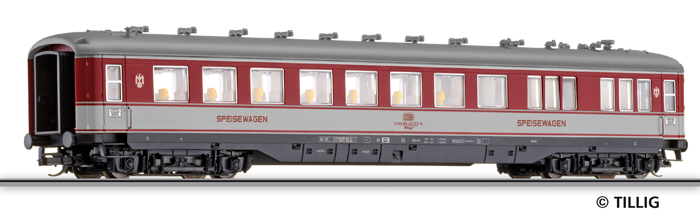 | červený se světlešedým pásem a šedou střechou, jídelní vůz |