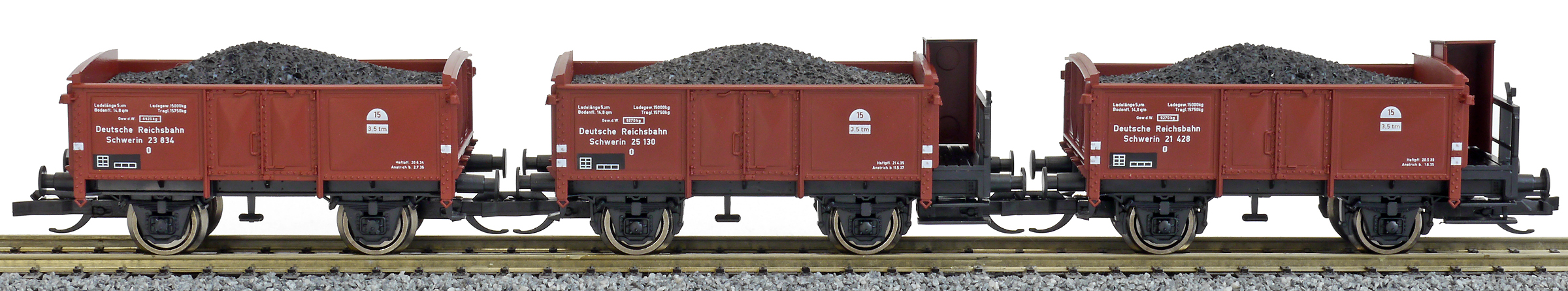 | otevřený nákladní vůz červenohnědý ložený uhlím |