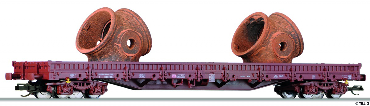 | nízkostěnný nákladní vůz červenohěndý s nákladem dvou odlitků |