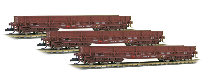 Popis   set tří červenohnědých nízkostěnných vozů Samms