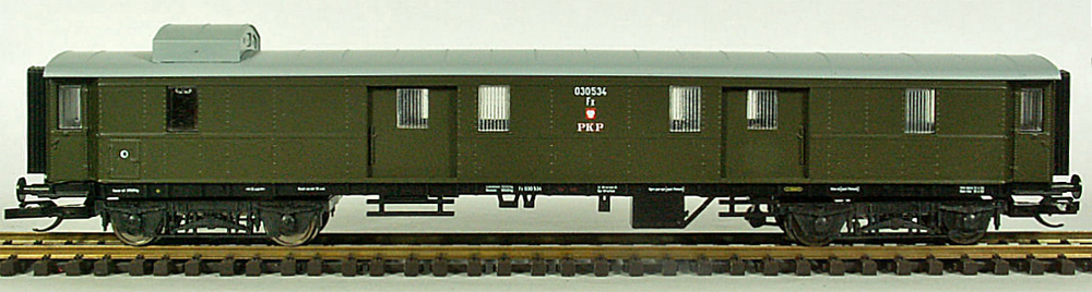 | zelený s šedou střechou zavazadlový vůz |