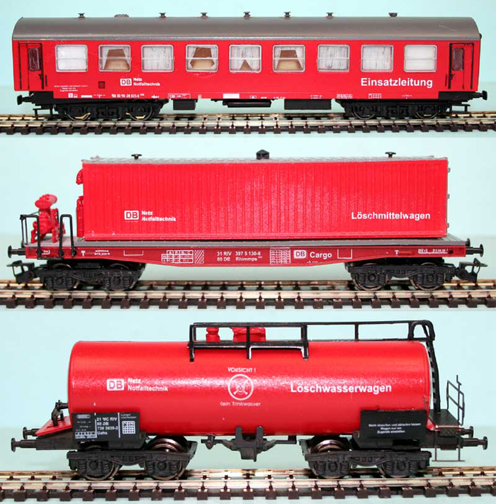 set tří vozů požárního vlaku