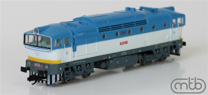 Popis   dieselová lokomotiva bílá-světle modrá s výstražným pruhem, šedý rám a pojezd