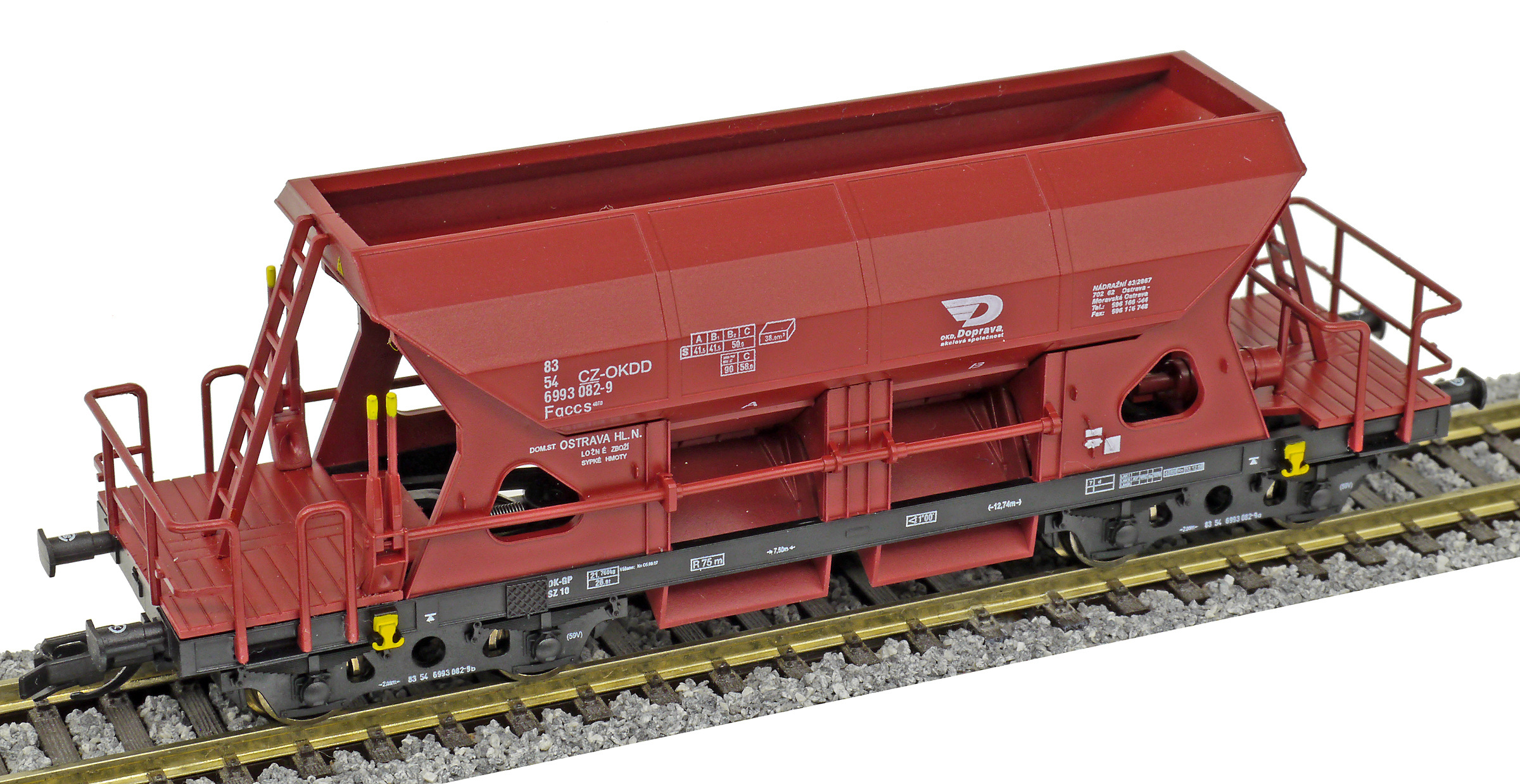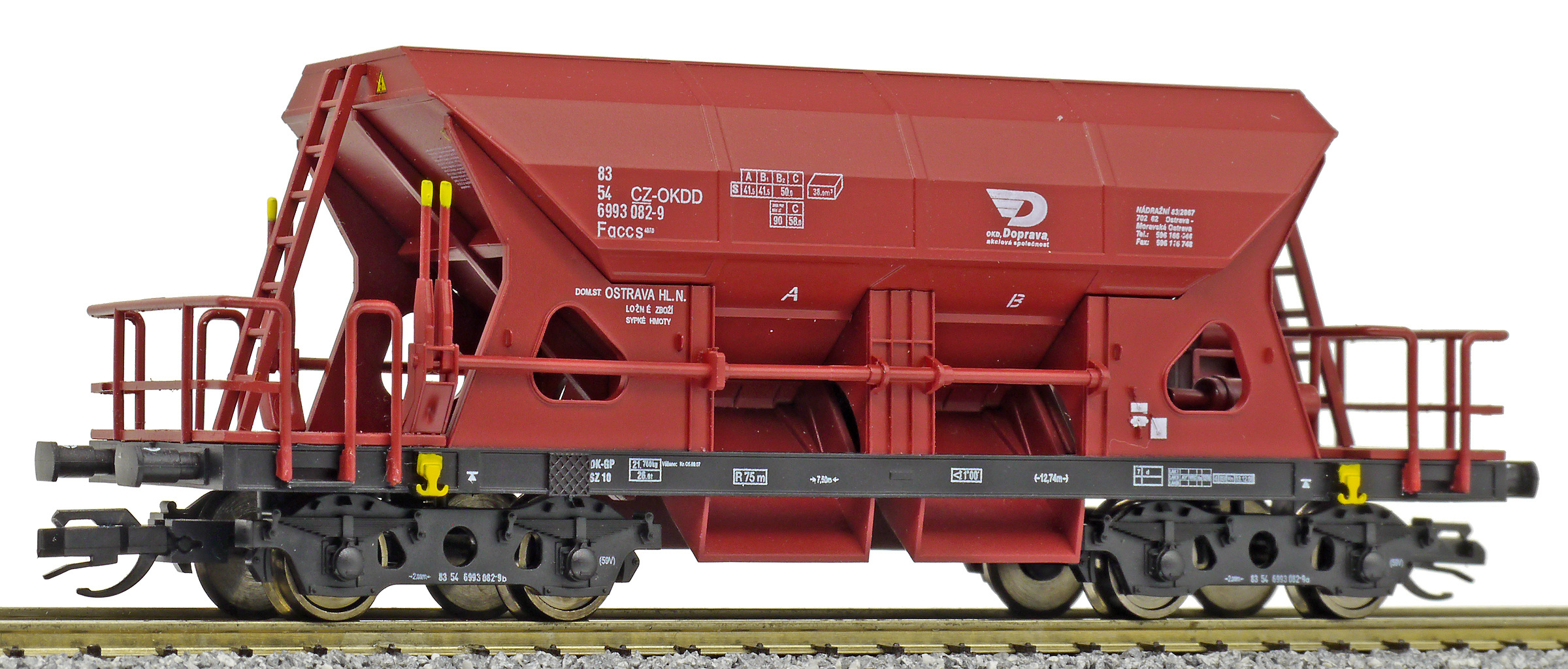 | nákladní samovýsypný vůz červenohnědý s černým rámem „OKD Doprava” |