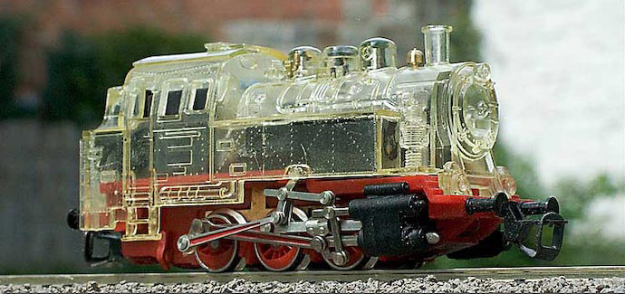 měřítko 1:120 - rozchod kolejí 12 mm 3 hnané nápravy nenormované uchycení spřáhla digitalizace možná jen s úpravami 93 mm - celková délka modelu přes nárazníky