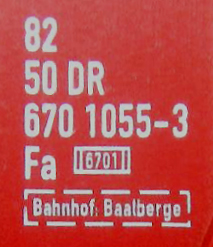 | • 82 50 670 1055-3 | → | DR - Deutsche Reichsbahn |