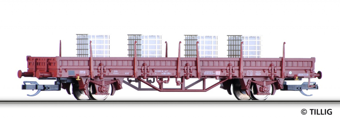 nízkostěnný nákladní vůz červenohnědý s nákladem 4 IBCkontejnerů „Gefahrgut”