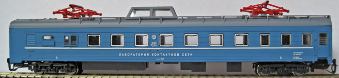 modrý s šedou střechou a pantografy, měřící vůz