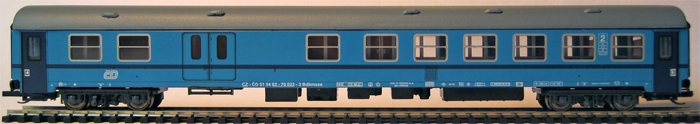 | rychlíkový vůz modrý s šedou střechou se zavazadlovým oddílem 2. tř. |