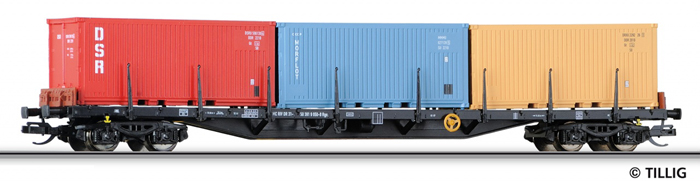 | nákladní plošinový vůz černý se třemi kontejnery 20' |