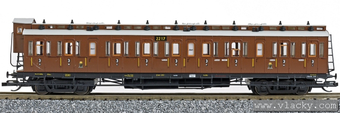 | oddílový osobní vůz červenohnědý se světle šedou střechou oddílový vůz 3. tř. |
