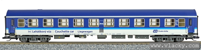Popis   lehátkový vůz modrý-bílý v barevném chematu „Najbrt“ 2. tř.