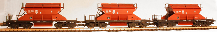 | set tří samovýsypných vozů s odklopným zakrytím |