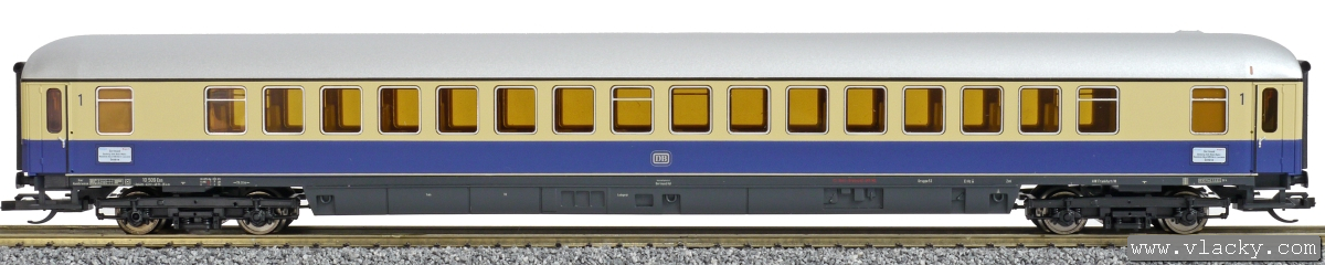 modrý-slonová kost s šedou střechou velkoprostorový vůz 1. tř.