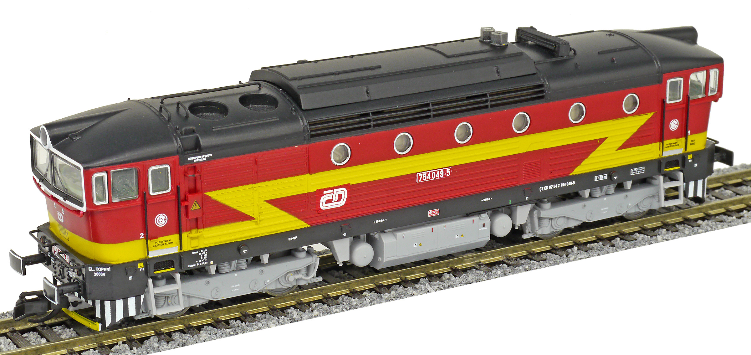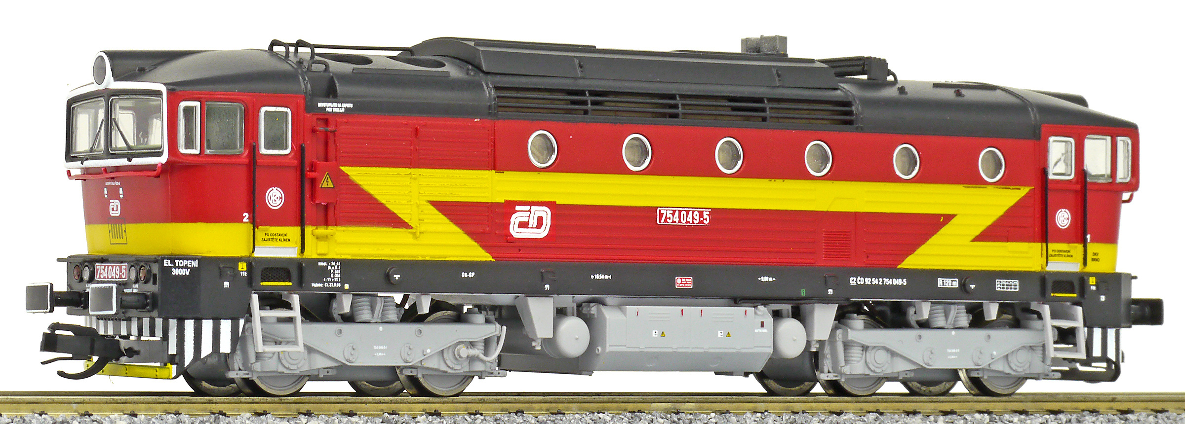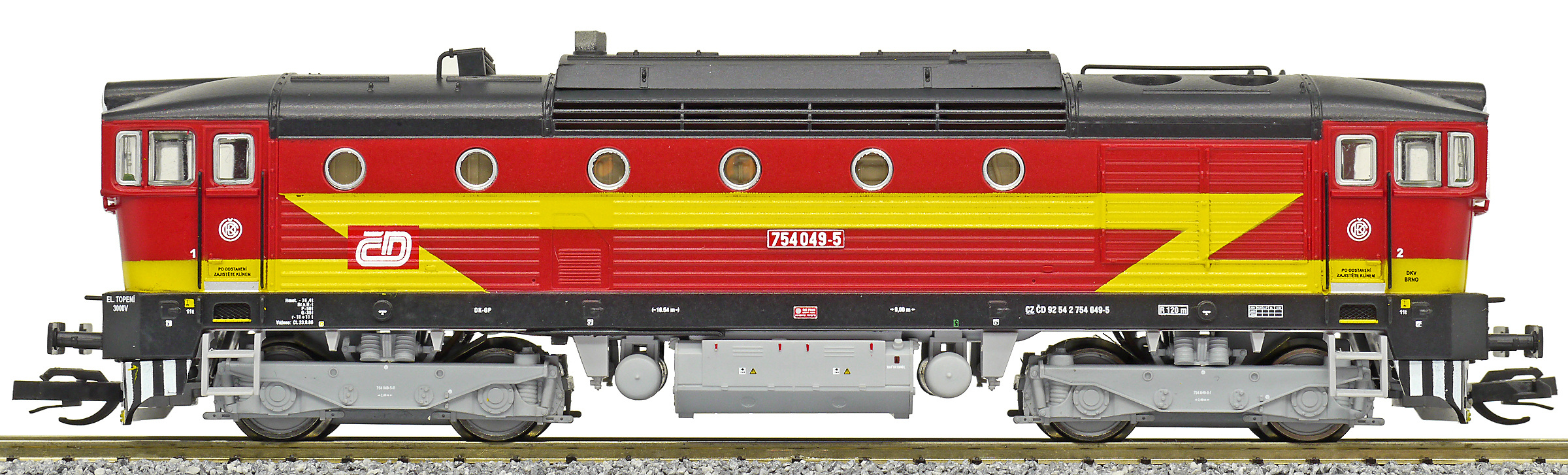 Popis   dieselová lokomotiva červená se žlutými blesky, černá střecha a rám