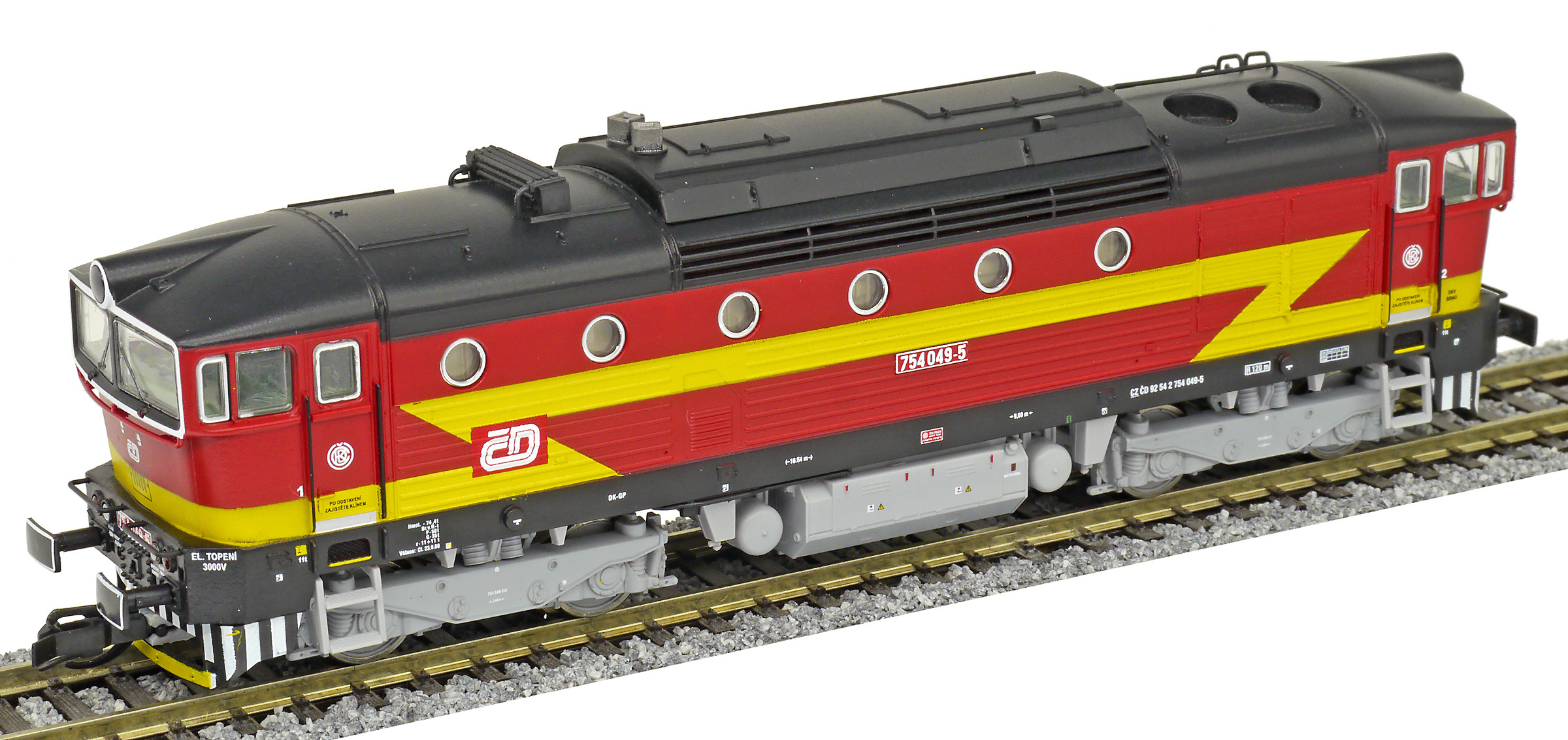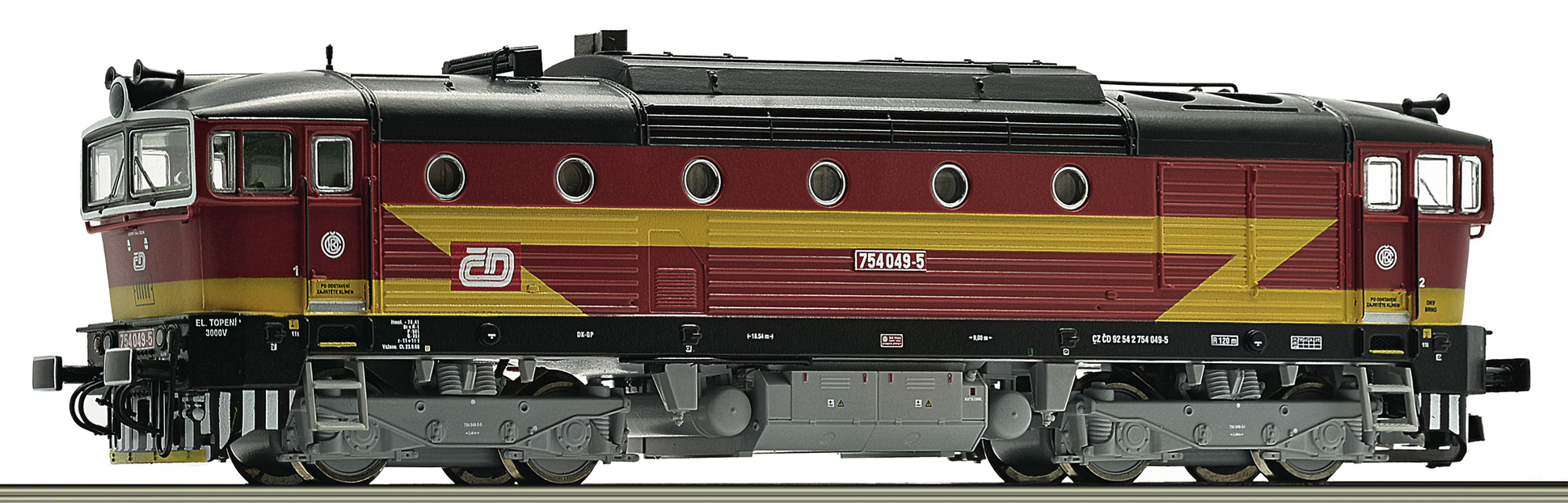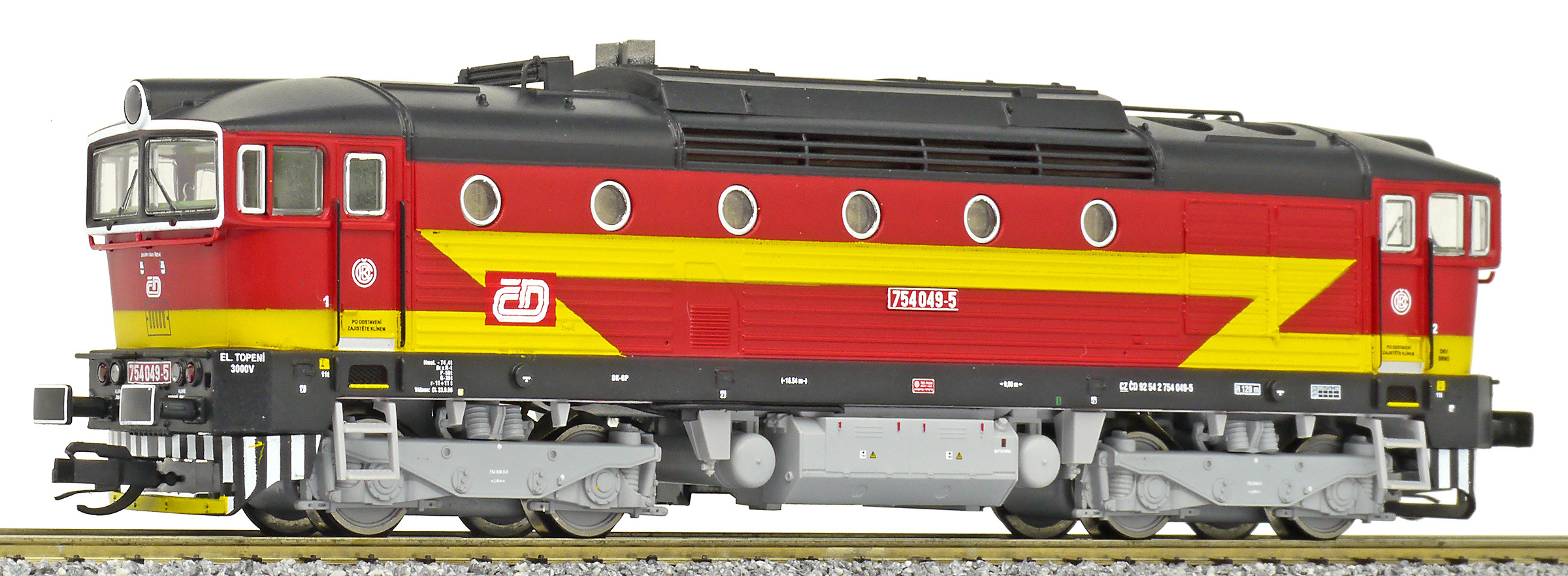 Popis   dieselová lokomotiva červená se žlutými blesky, černá střecha a rám