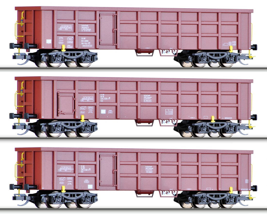 | set tří vysokostěnných otevřených vozů |