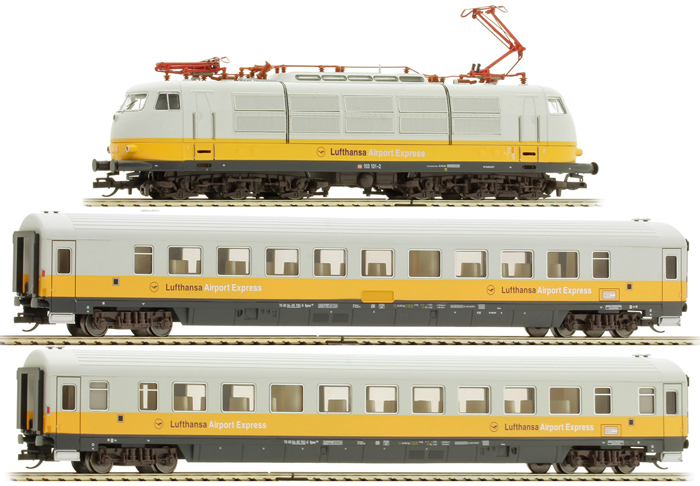 | set elektrické lokomotivy BR 103 a dvou rychlíkových vozů „Airport Express |