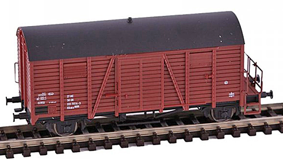 červenohnědý s černou střechou a brzdařskou plošinou