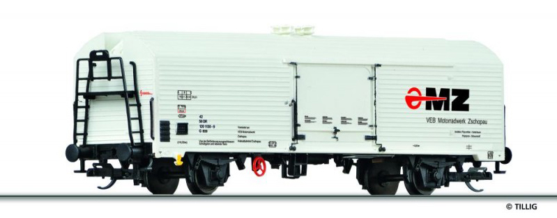 | nákladní chladící vůz bílý s logem „MZ-Motorradwerke“ |