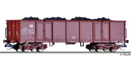 | vysokostěnný nákladní vůz červený „Railion” s nákladem uhlí |