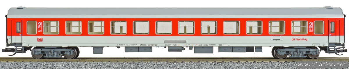 | rychlíkový vůz červený-bílý s šedou střechou 2. tř. „DB NachtZug“ |