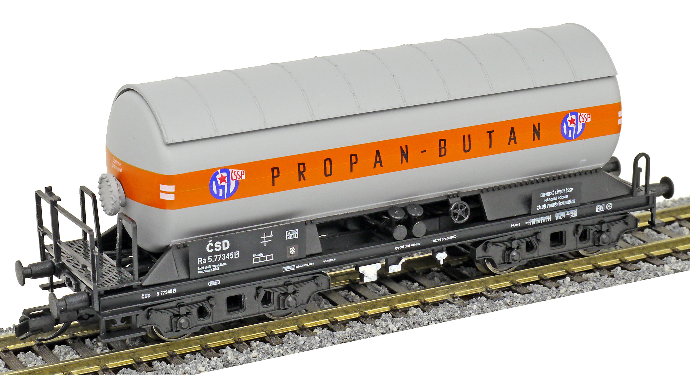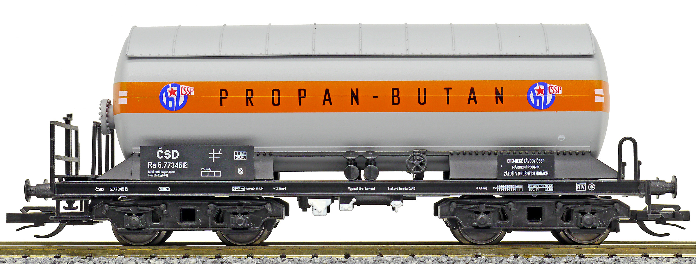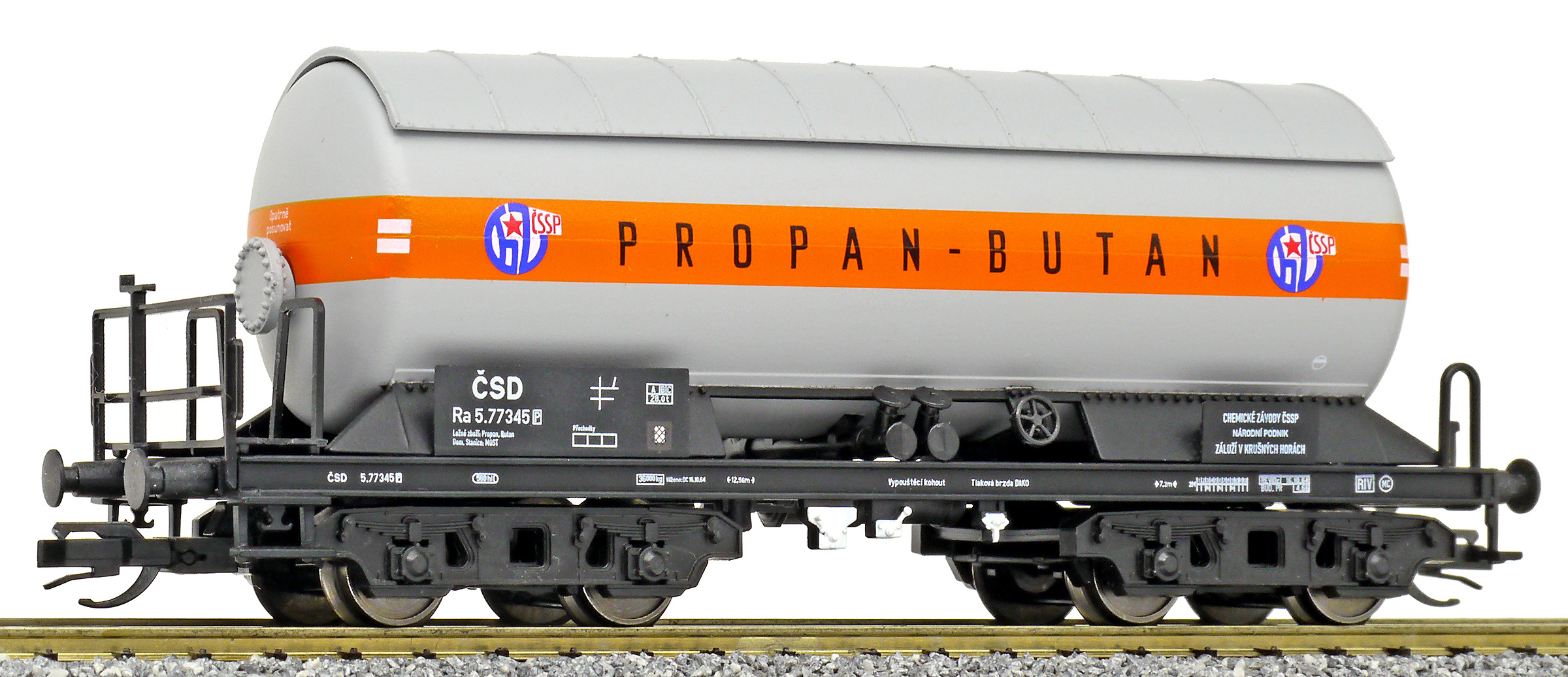 | kotlový vůz na plyn se slunečním štítem „PROPAN-BUTAN“ |