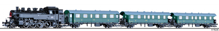 | set parní lokomotivy 455.2 a tří osobních vozů |