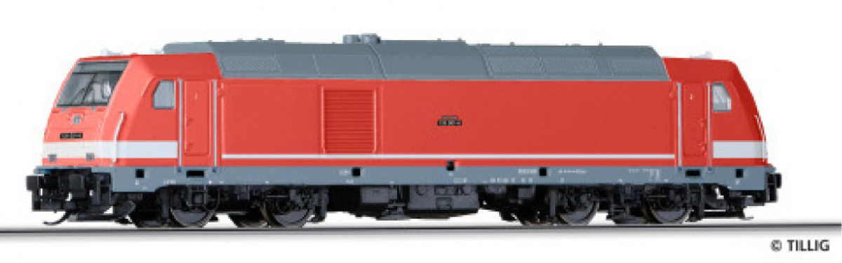 Popis   dieselová lokomotiva červená s krémovým pruhem, šedá střecha a rám