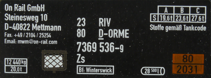 | • 23 80 7369 536-9 | → | Z - kotlový (cisternový) vůz |