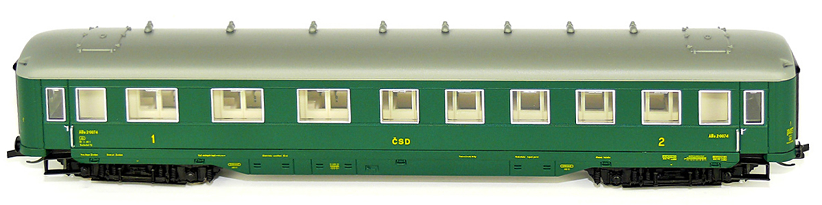 | osobní vůz zelený s šedou střechou 1./2. tř. |