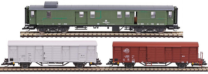 | krytý nákladní vůz červenohnědý s brzdařskou plošinou s logem „Reisegepäck - Expressgut“ |