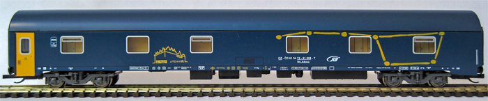 | lůžkový vůz tmavě modrý se siluetou „Litomyšl“ |