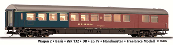 | červený-modrý, šedá střecha, jídelní vůz „Kakadu“ |