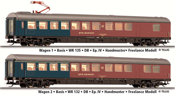 | set dvou jídelních vozů v barevném schematu „Kakadu“ |