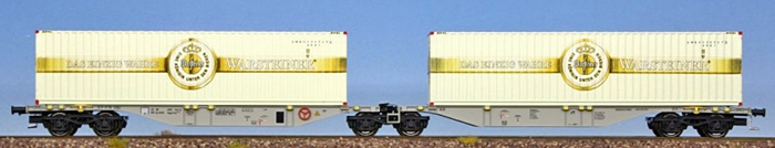 | dvoudílný kontejnerový vůz šedý se dvěma kontejnery 40' „Warsteiner“ |