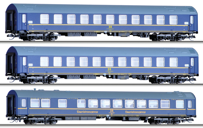 | lůžkový vůz modrý s šedou střechou „Tourex 3“ |
