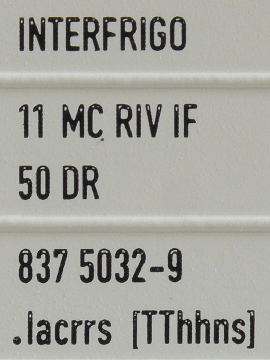 | • 11 50 837 5032-9 | → | nákladní, s podvozky, pevný rozchod, ve vlastnictví železniční správy, RIV, EUROP/IF |