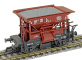 | nákladní samovýsypný vůz červenohnědý s nákladem štěrku |