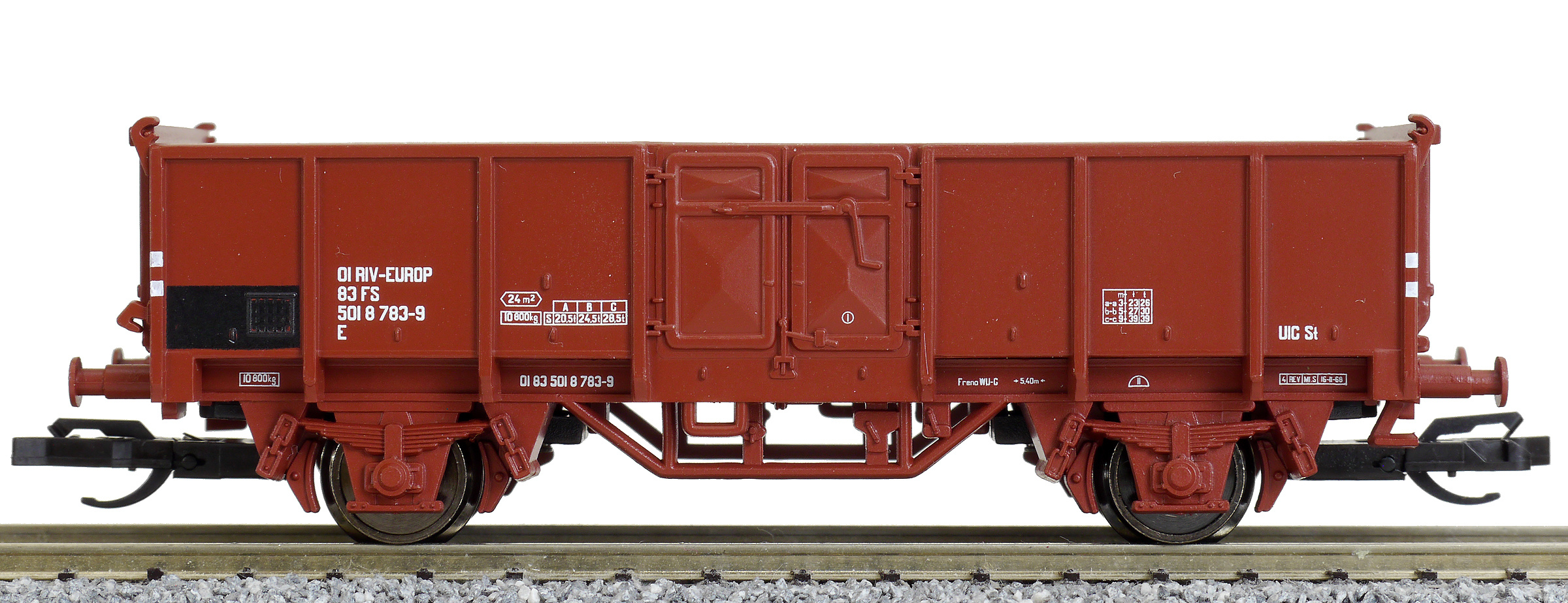 | • 01 83 501 8 783-9 | → | nákladní, nezávislé nápravy, pevný rozchod, ve vlastnictví železniční správy, RIV, EUROP/IF |