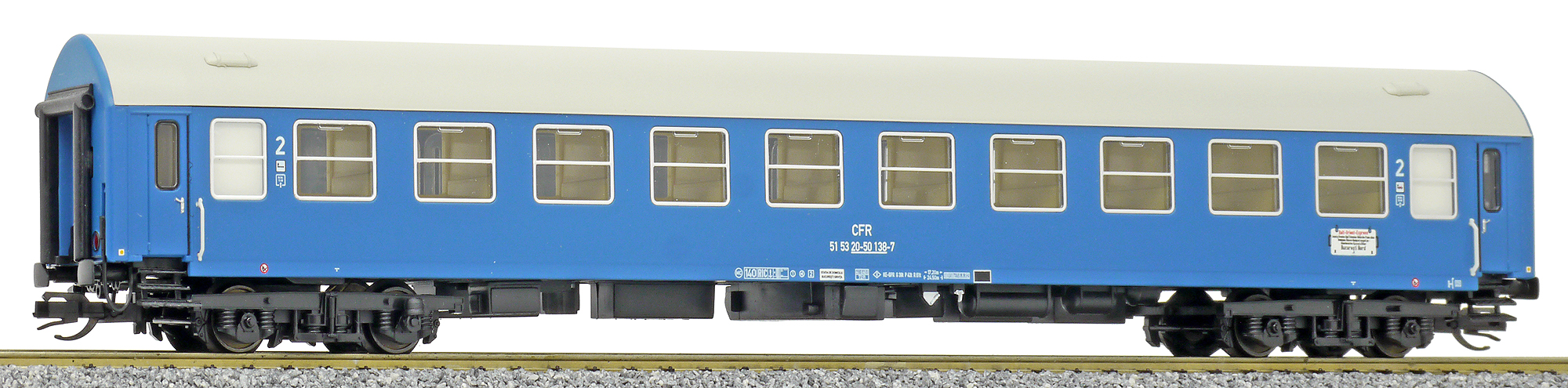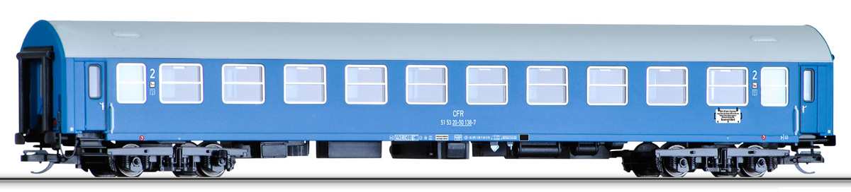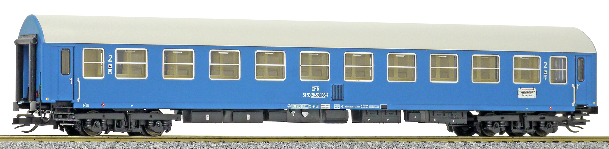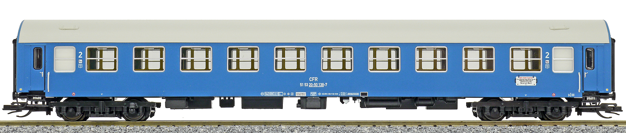 Popis   rychlíkový vůz modrý s šedou střechou 2. tř.