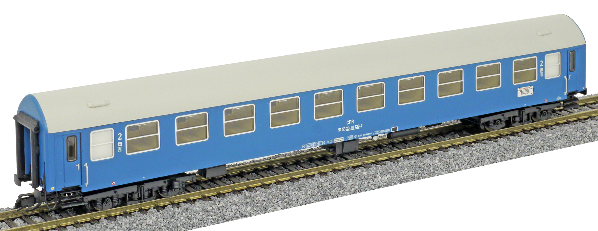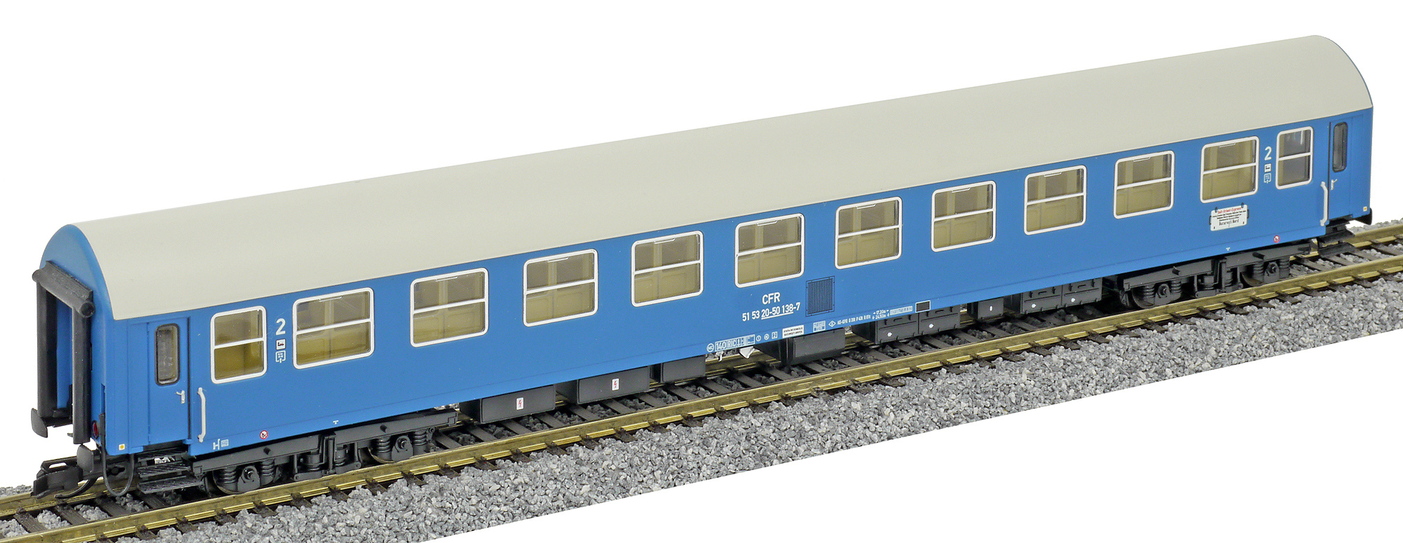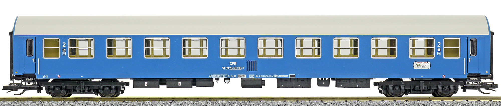 Popis   rychlíkový vůz modrý s šedou střechou 2. tř.