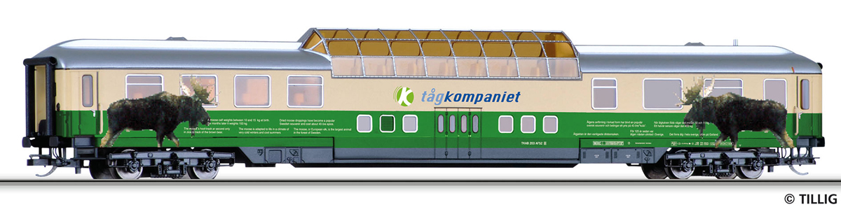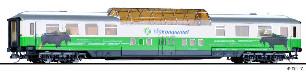 | zelený-slonová kost se stříbrnou střechou vyhlídkový vůz „tåg kompaniet“ |
