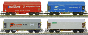 | set čtyř plošinových vozů s plachtou |