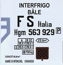| bílý chladící vůz s šedou střechou „INTERFRIGO“ |