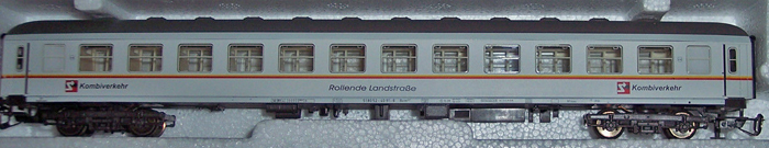 bílý s šedou střechou lehátkový vůz „Rollende Landstraße“