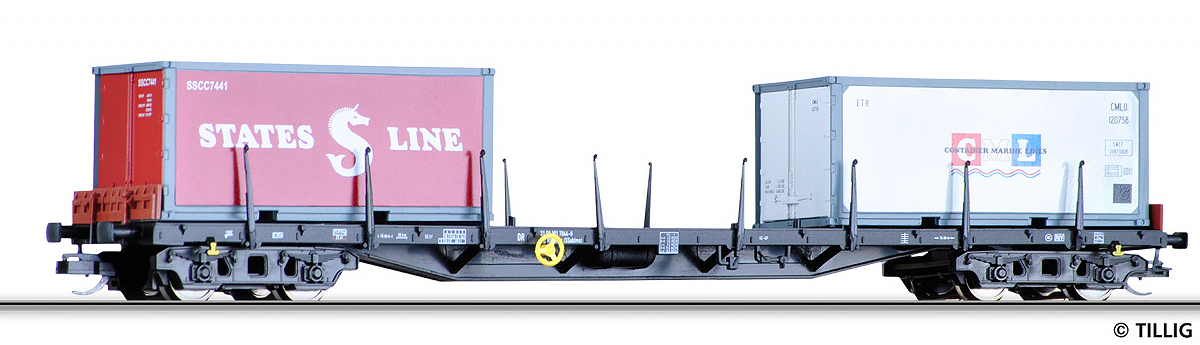 | nákladní plošinový vůz černý se dvěma kontejnery 20' |